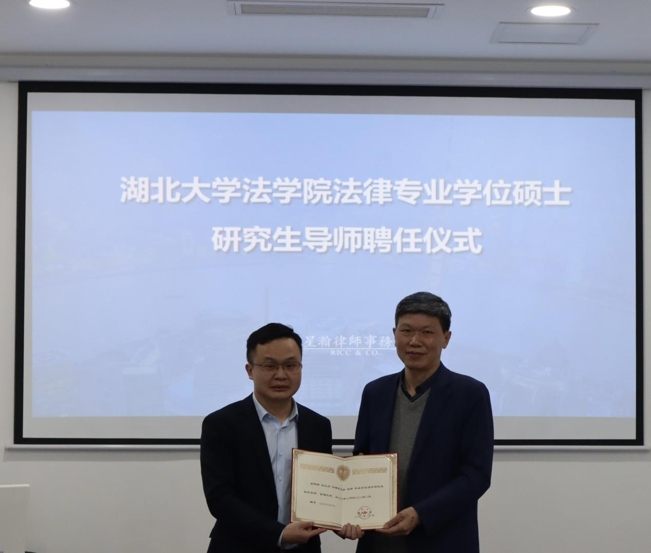 最后,公司领导分别为沈大力律师、周文洁律师、刘曙律师颁发了ylg060net永利娱高法律专业学位硕士研究生校外导师聘任证书。