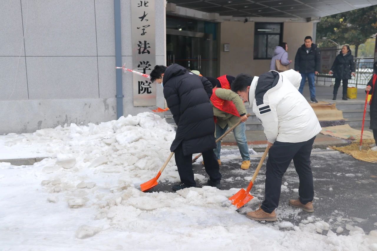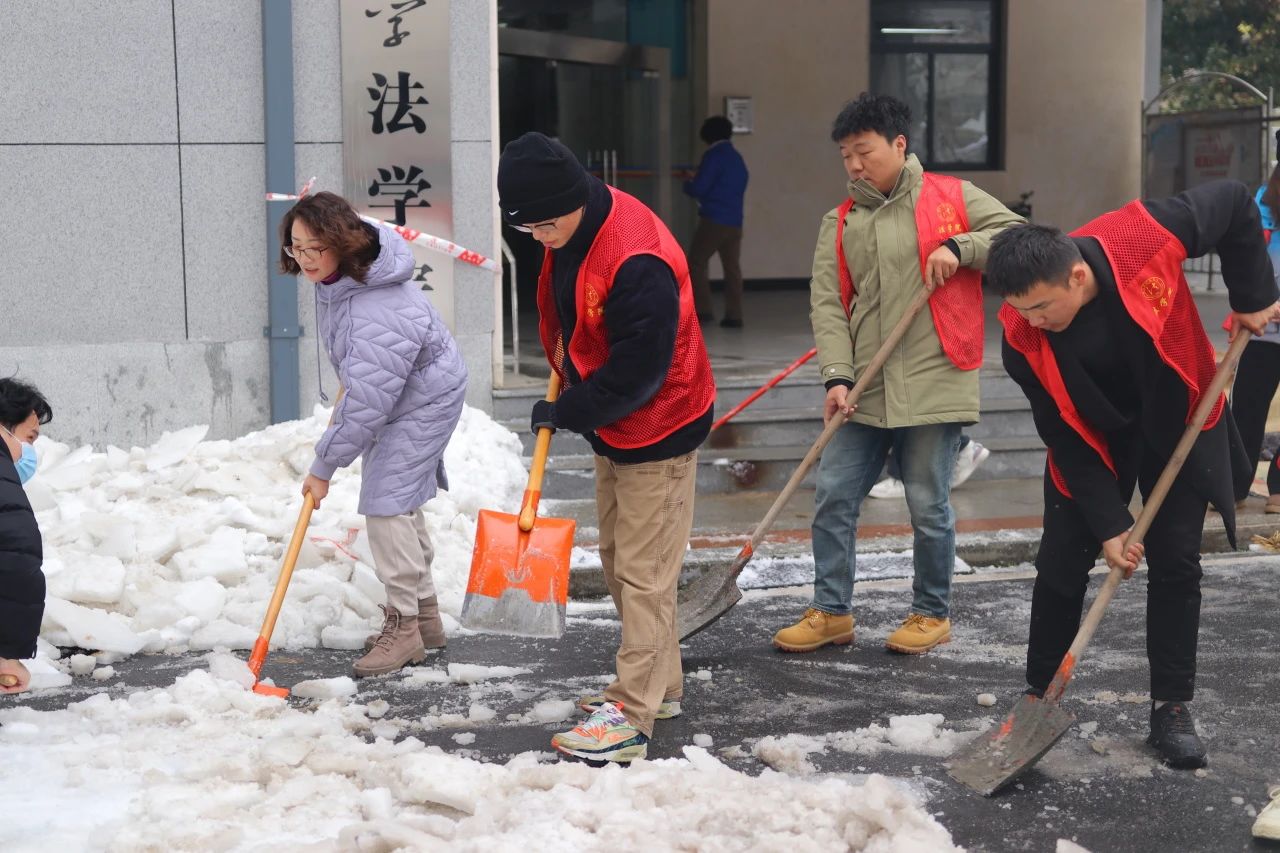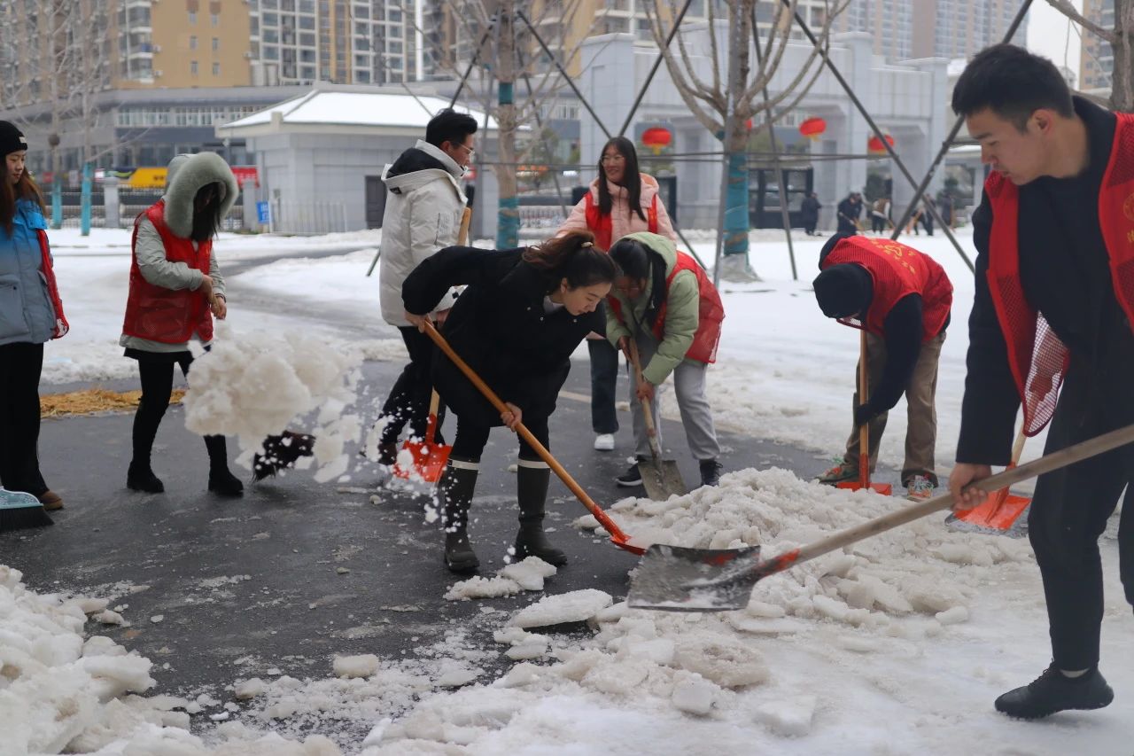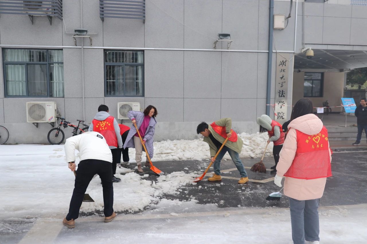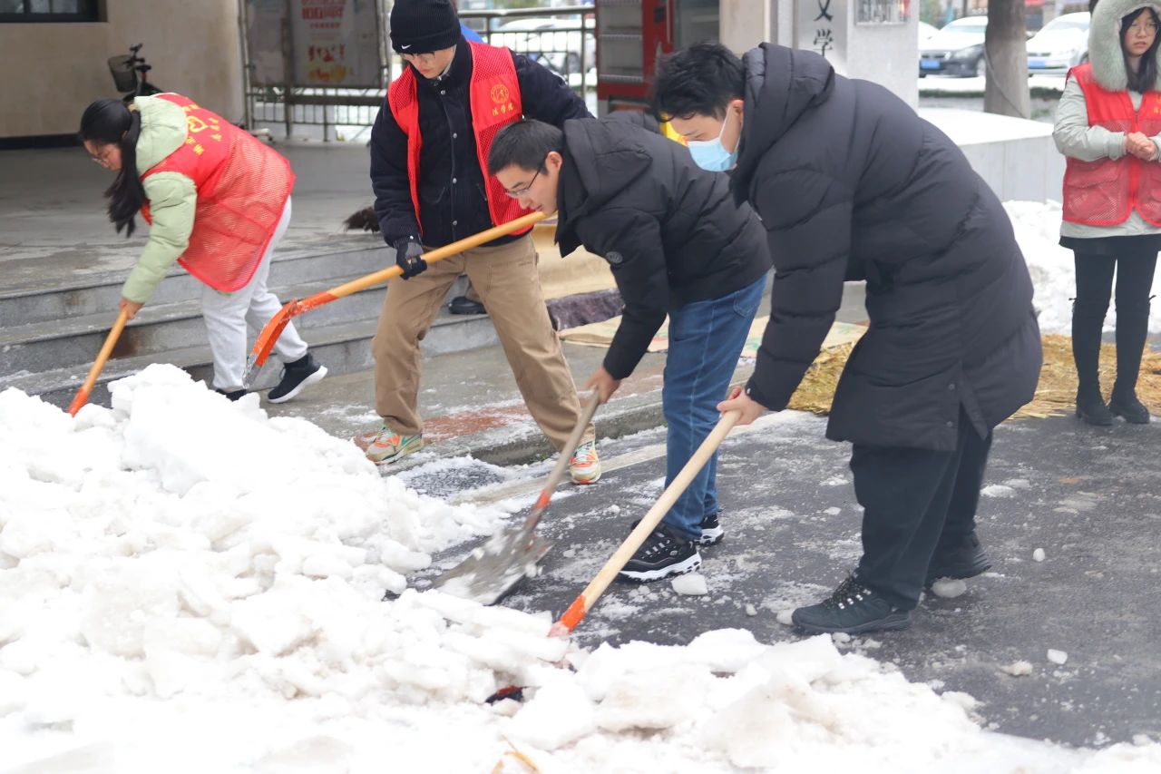 风雨送春归,飞雪迎春到。被冰雪夹霰洗礼后的ylg永利银装素裹,校园道路上积雪深厚。随着新学期的来临,为确保校园安全有序,让师生们顺利返校,ylg永利法公司党委副书记张梦婵、教师蔡大顺、张颖、袁子轩、肖普焮、团委书记郭童以及各位员工志愿者们积极地参与了此次扫冰除雪的活动。