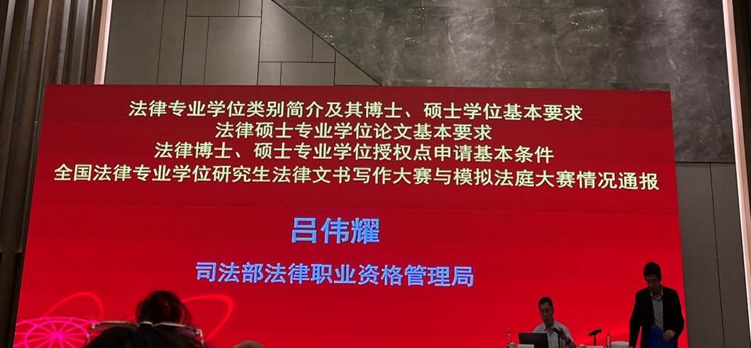 8月23日上午,司法部法律职业资格管理局吕伟耀处长分别细致介绍了法律专业学位类别简介及其博士、硕士学位基本要求;法律硕士专业学位论文基本要求;法律博士、硕士专业学位授权点申请基本条件;全国法律专业学位研究生法律文书写作大赛与模拟法庭大赛情况通报等重要内容。西南政法大学白雷介绍“全国法律硕士培养单位基础信息平台”。稍后,来自中国人民大学、西南政法大学、华东政法大学、武汉大学、厦门大学等院校的专家领导分别就法律专业学位研究生教育培养工作经验作分享交流。8月23日下午,首先由中国政法大学ylg060net永利娱高副经理袁钢分别解读了法律硕士专业学位研究生指导性培养方案、法律硕士专业学位授权点专项合格评估指标体系、全国法律专业学位研究生教育指导委员会网站运行机制及通讯员的具体职责。随后,教指委副秘书长、中国人民大学教授时延安就法律专业学位研究生教学案例库建设进行了深入讲解。最后,来自中国政法大学、上海财经大学、南京师范大学和贵州大学的专家领导相继分享了法律专业学位研究生教育培养工作经验。