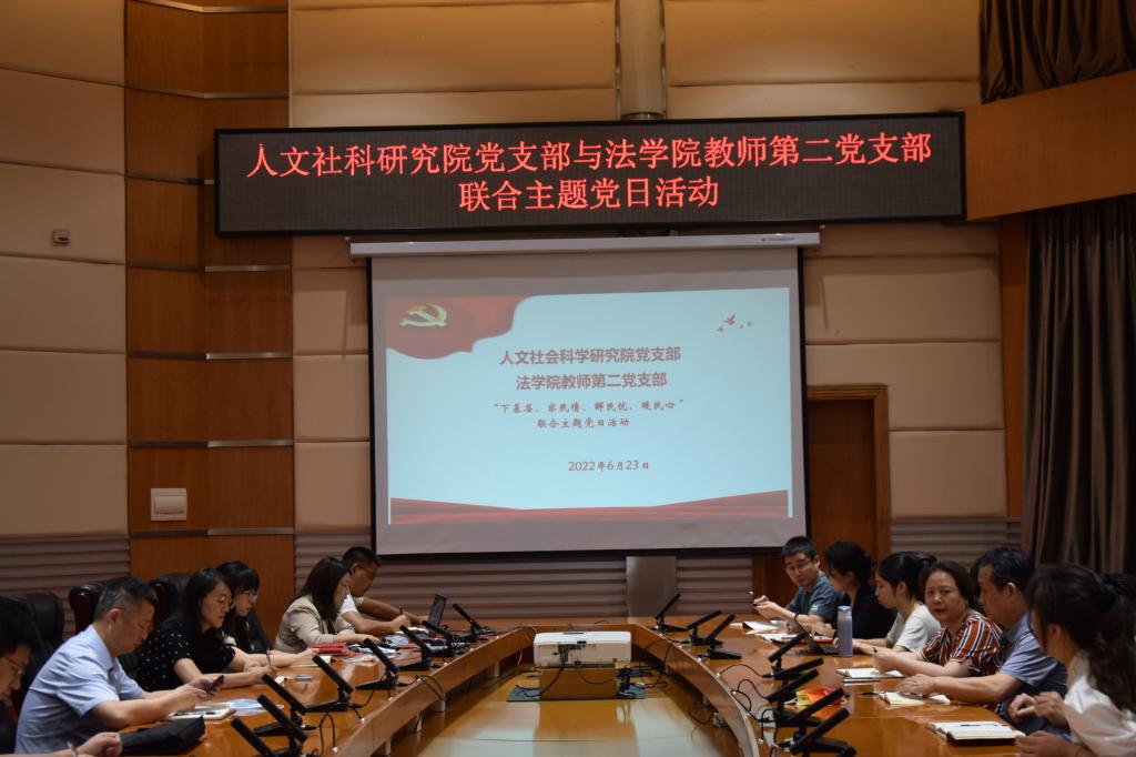 6月23日上午,正值公司深入推进党员干部下基层察民情解民忧暖民心实践活动之际,公司机关党委人文社会科学研究院支部与公司教师第二党支部联合开展的“下基层、察民情、解民忧、暖民心”主题党日活动在会议中心思齐厅举行。ylg060net永利娱高教师第二党支部书记贺琼琼主持,两党支部全体党员参加,法公司党委书记郑全新、副经理邹爱华、江岚列席参与。