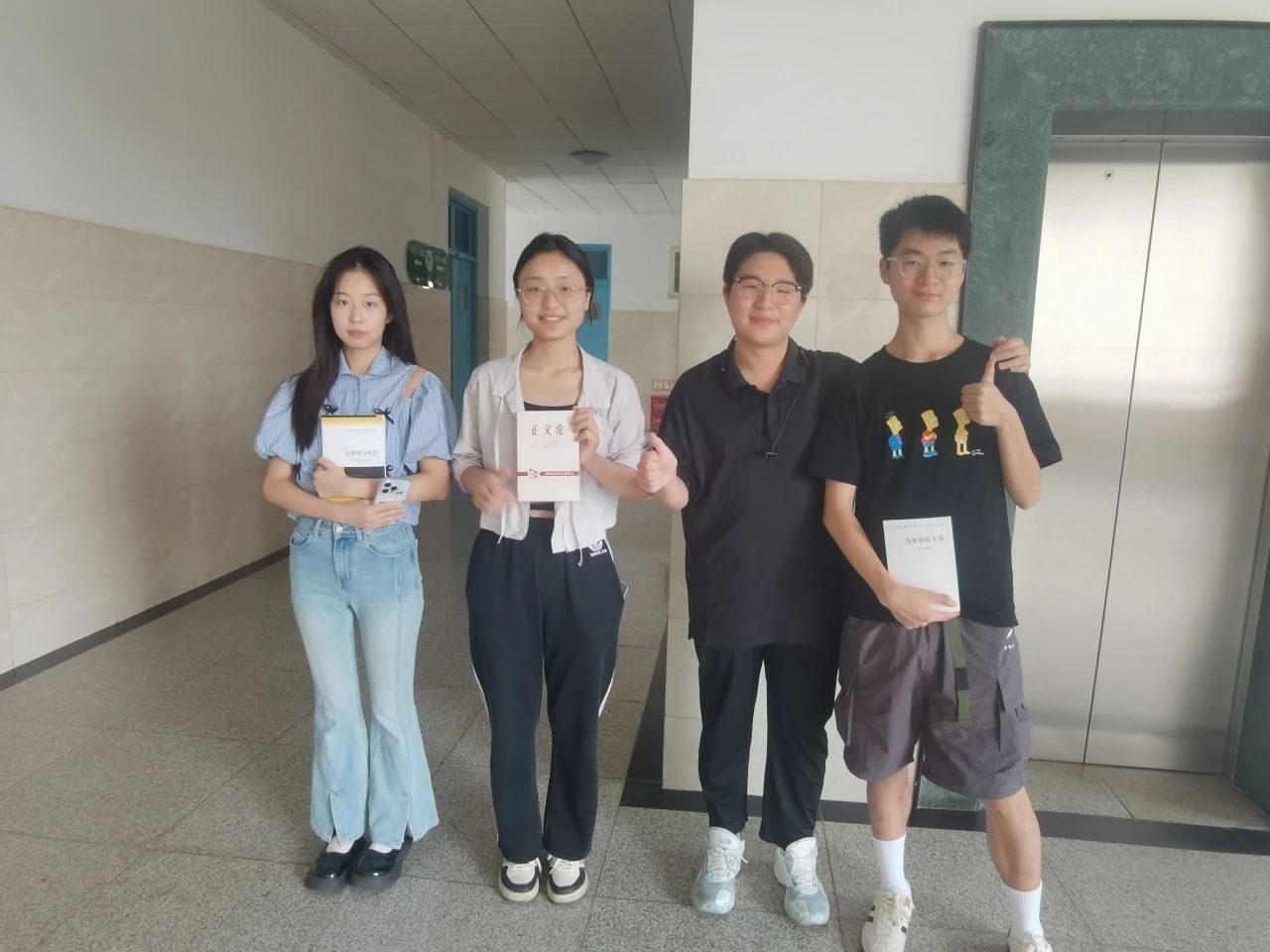 烟高杯赛组委成员兼ylg永利辩论队队长ylg060net永利娱高22级应昊然在开学后为同学们发放奖品,并与三位最佳辩手合影留念。(从左到右依次为李千语、张远佳、应昊然、王庆鸿)