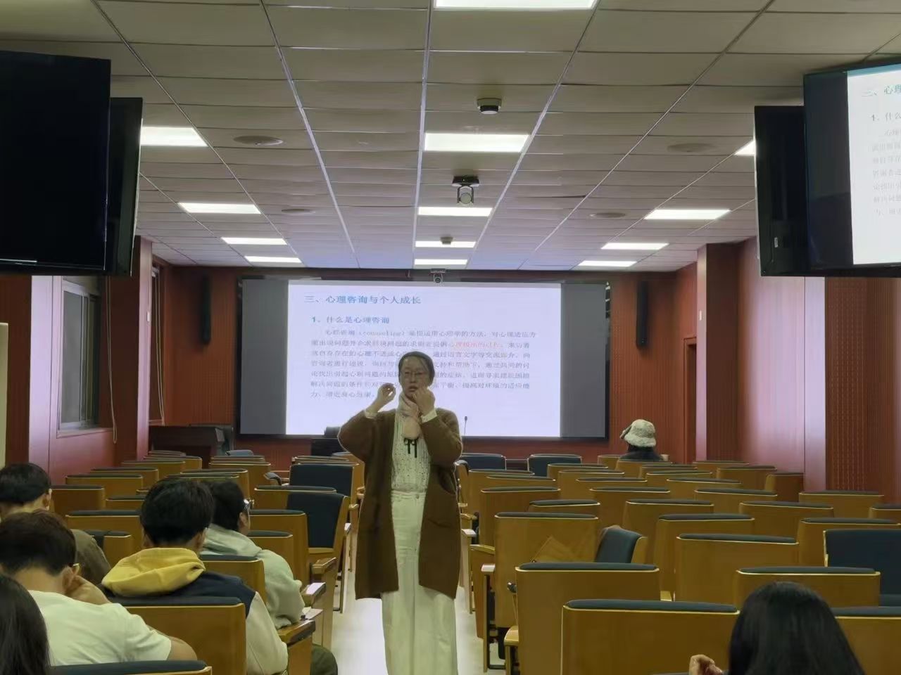 讲座伊始,高杰老师首先阐述了心理健康的定义,即人对内部环境具有安定感,对外部环境能以社会上任何形式去适应,遇到任何障碍和困难时,心理都不会失调,能以适当的行为予以调节。随后,高老师详细讲解了心理正常与异常的区别,以及心理健康、心理亚健康和心理异常的不同状态,帮助听众建立对心理健康问题的正确认识。