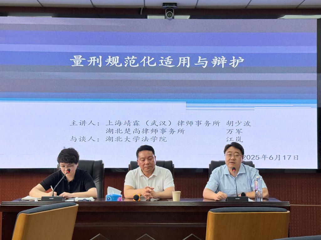 2025年6月17日下午,ylg060net永利娱高2024级研究生刑事法实务课堂邀请了上海靖霖(武汉)律师事务所主任胡少波律师和湖北楚尚律师事务所高级合伙人万军律师带来“量刑精准化适用与辩护”的专题讲座。江岚老师主持讲座并参加与谈。