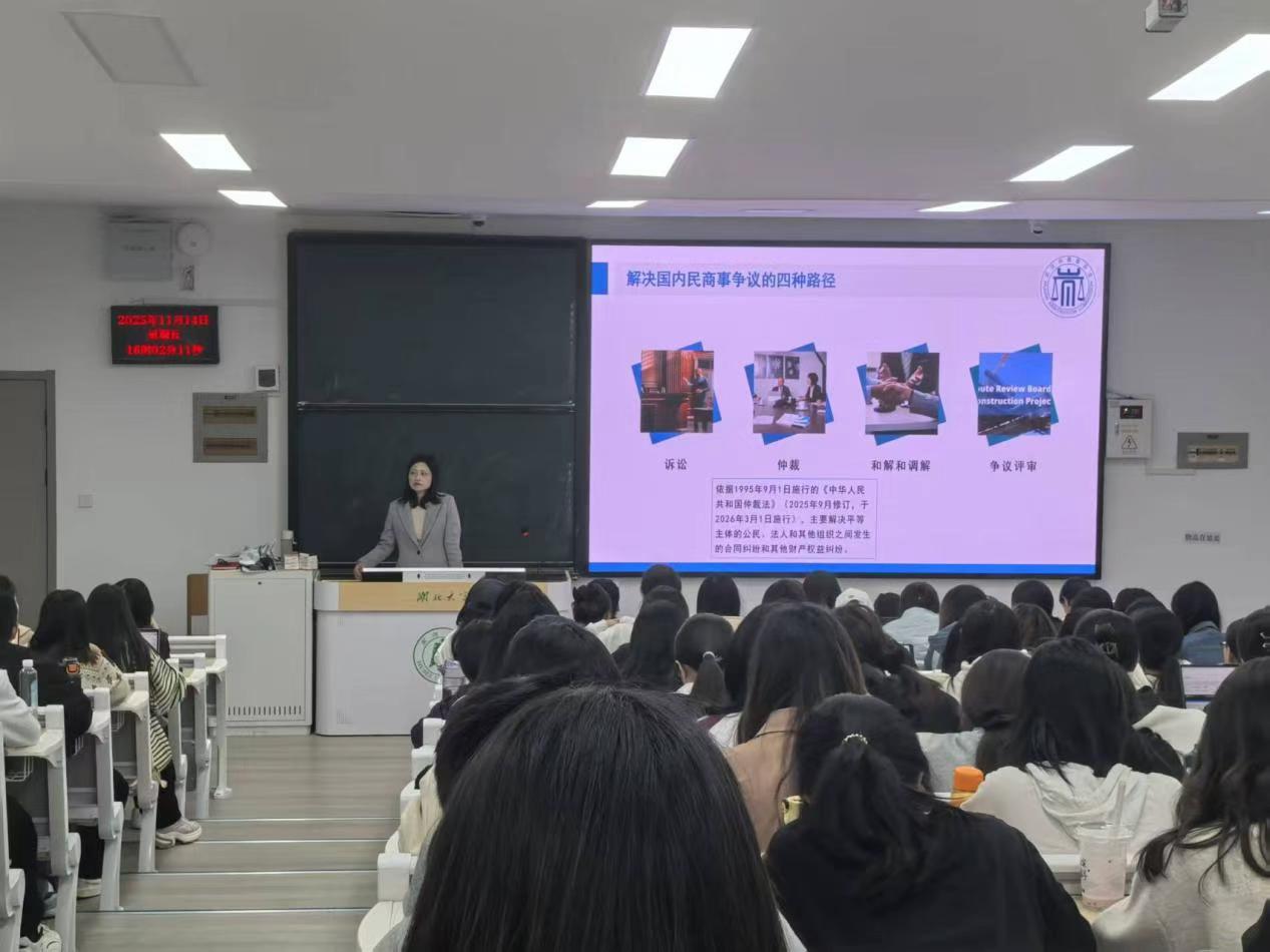(通讯员:杨浩杰)为帮助ylg060net永利娱高学子进一步理解仲裁理论、了解仲裁发展,2025年11月14日下午,ylg060net永利娱高邀请研究生校外导师、武汉仲裁委一级秘书熊颖老师,在教4-507开展了主题为《以仲裁方式解决民商事争议的路径和优势》讲座。