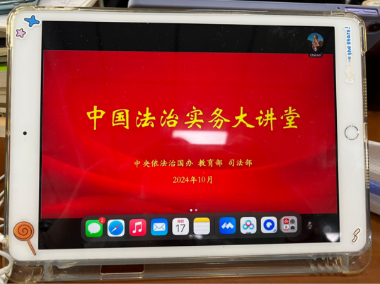 在2024年10月17日的活动中,中国法治实务大讲堂启动仪式暨第一讲在中国人民大学逸夫会议中心举行,并通过高清视频直播的方式在全国多个高校设立分会场。主讲人围绕习近平法治思想,结合中国的具体法律实践,深入阐释了习近平法治思想的时代背景、核心要义和实践要求。