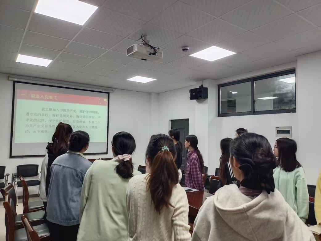 活动第一项,重温入党誓词。全体党员在领誓人的带领下共同宣誓,再一次用铮铮誓言诠释入党初心。